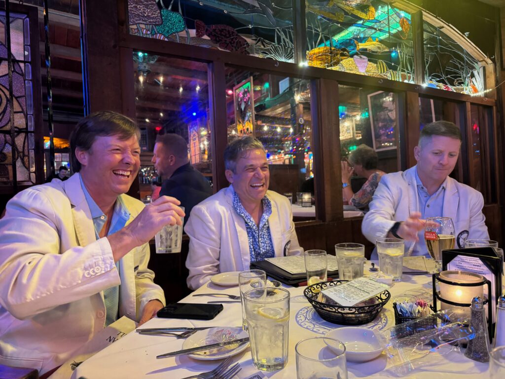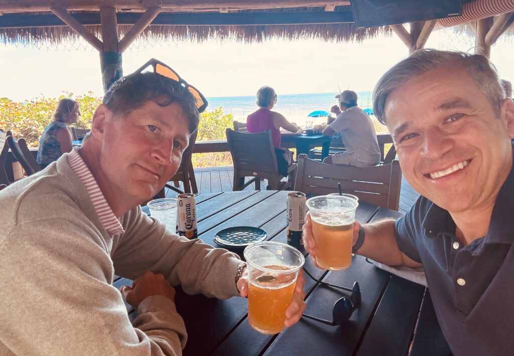 Captains Andy Sands and Dave Johnson enjoy a pre-PAC beverage